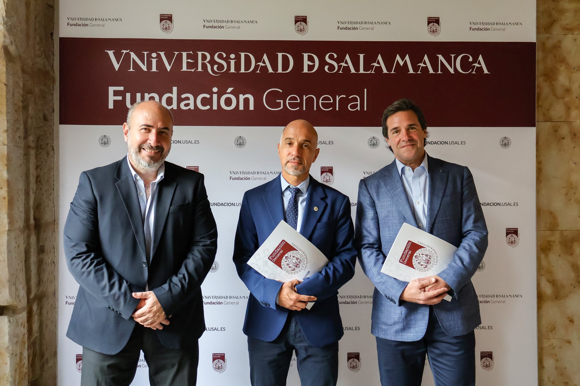 Octubre 2024. Oscar González Benito, Director-Gerente de la Fundación General de la Universidad de Salamanca. Fernando Ortiz, Fundador y Director Académico y de I+D de doinGlobal. Enrique Azuaga, CEO de doinGlobal.